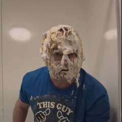 Luvs2pie was surprised by bsmessybakery with a big sloppy cream pie to the face